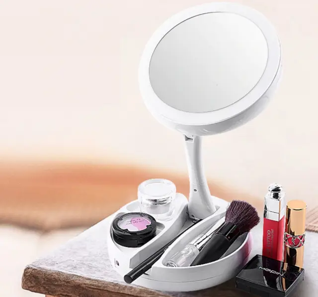 Дзеркало з LED підсвічуванням кругле + тубус для зберігання косметики (6016)