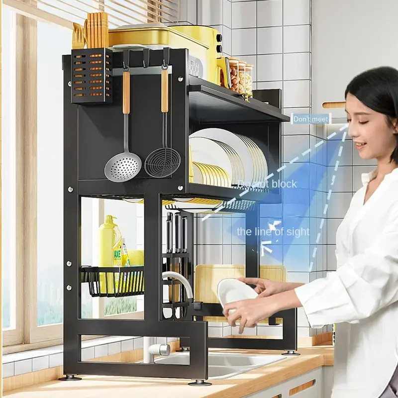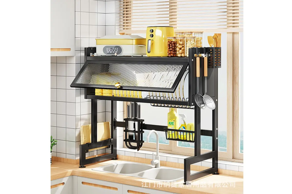 З розміром 65 см органайзер чудово підходить для більшості стандартних раковин, що дозволяє ефективно заощаджувати місце на кухні. Його конструкція включає кілька функціональних відділень: основну секцію для сушіння посуду та шафки внизу, де можна зберігати різне кухонне приладдя – від миючих засобів до серветок та губок. Це допомагає підтримувати чистоту та порядок, мінімізуючи безлад на робочій поверхні.