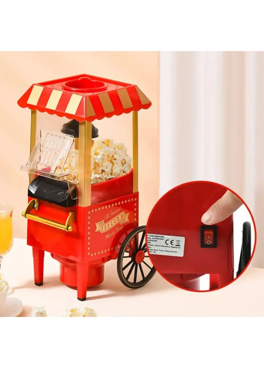 Апарат для приготування попкорну TM-112 – Домашній апарат для попкорну приготує вам смачну повітряну кукурудзу, а вам залишиться тільки насолоджуватися переглядом нового фільму або улюбленої телепередачі. Потрібно лише засипати зерна через отвір угорі та включити пристрій. Далі машина все зробить сама. Завдяки своїм невеликим розмірам апарат легко поміститься у Вас на робочому столі в офісі, вдома та й взагалі де побажаєте. Тепер Ви зможете налагодити власне виробництво попкорну у себе вдома та запрошувати друзів для перегляду фільмів.